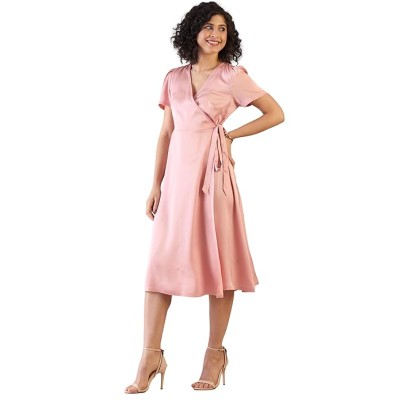 Pink Half Sleeve V-Neck Pink Wrap Dress